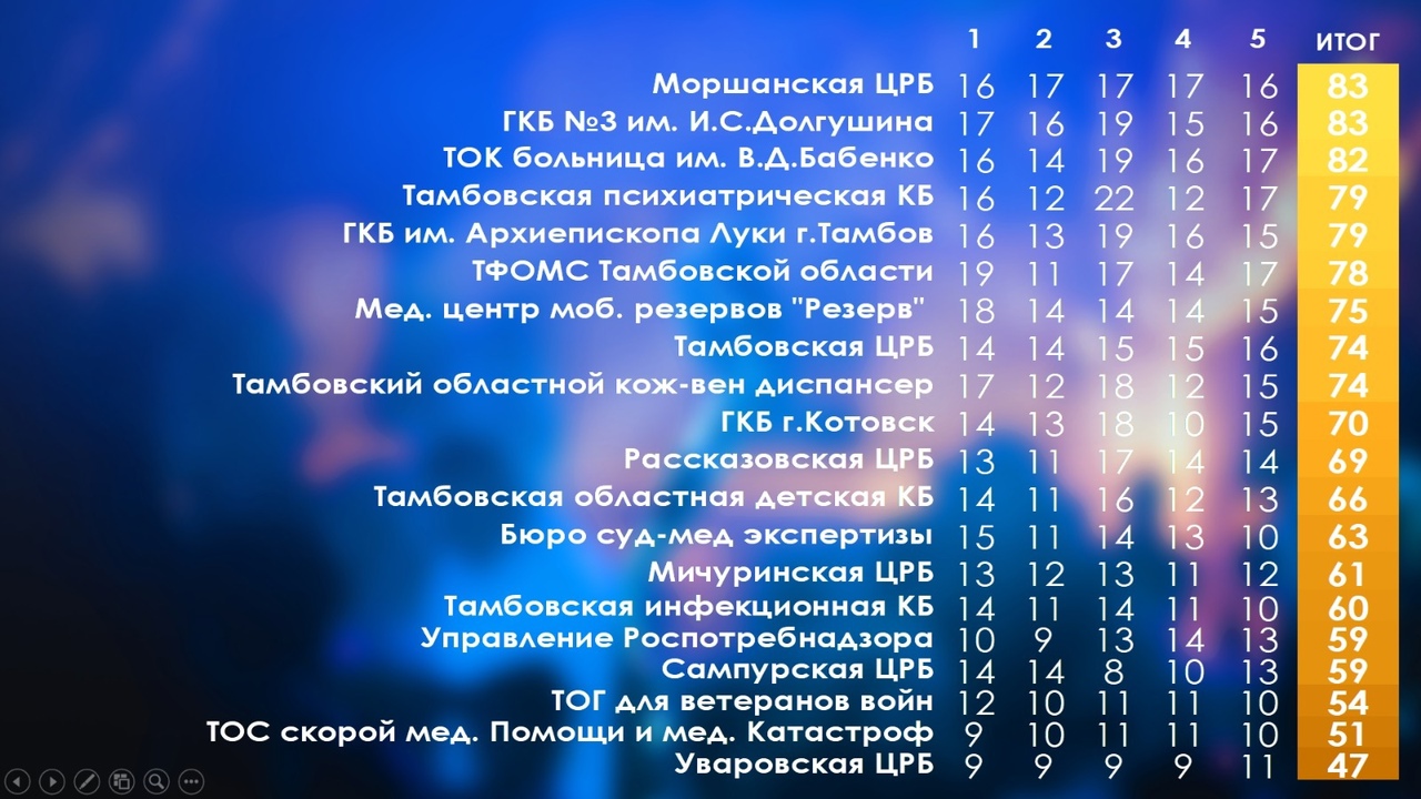 Среди 20 команд от медицинских учреждений области в игре приняли участие представители ТОГБУЗ «Моршанская ЦРБ».