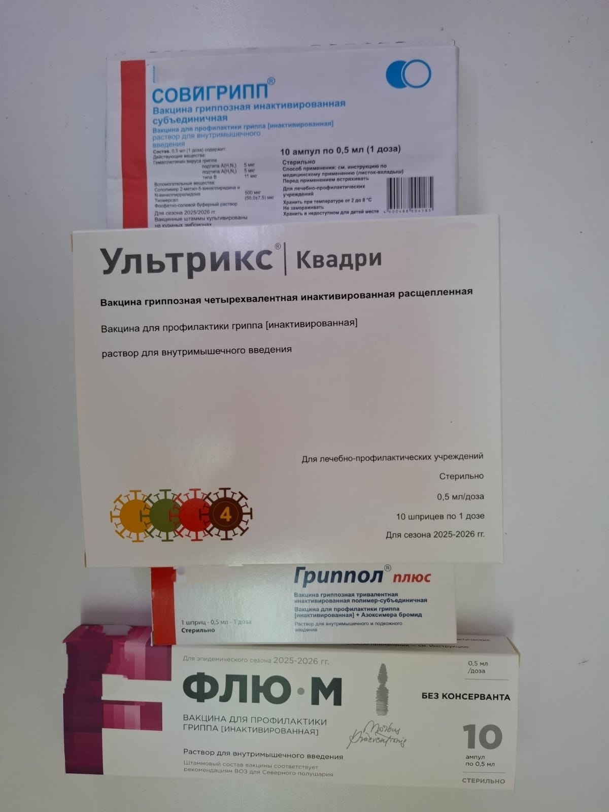 Напомним, что профилактические прививки проводятся в ТОГБУЗ «Моршанская ЦРБ» следующими вакцинами: взрослому населению - СОВИГРИПП, УЛЬТРИКС Квадри, ГРИППОЛ Плюс, Флю-М ; детям - СОВИГРИПП, Флю-М, УЛЬТРИКС Квадри, ГРИППОЛ Плюс ; беременным женщинам – УЛЬТРИКС Квадри.