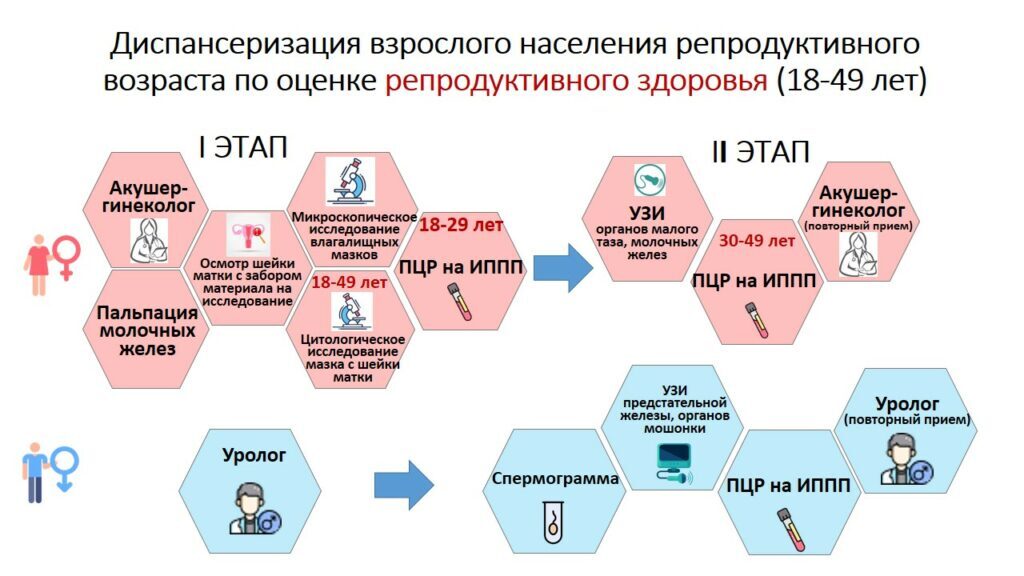 Диспансеризация репродуктивного здоровья проводится для мужчин и женщин в возрасте 18-49 лет.