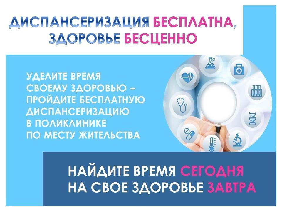 Диспансеризация – это регулярный медицинский осмотр и консультация специалистов, выполнение лабораторных анализов и инструментальной диагностики состояния здоровья населения.