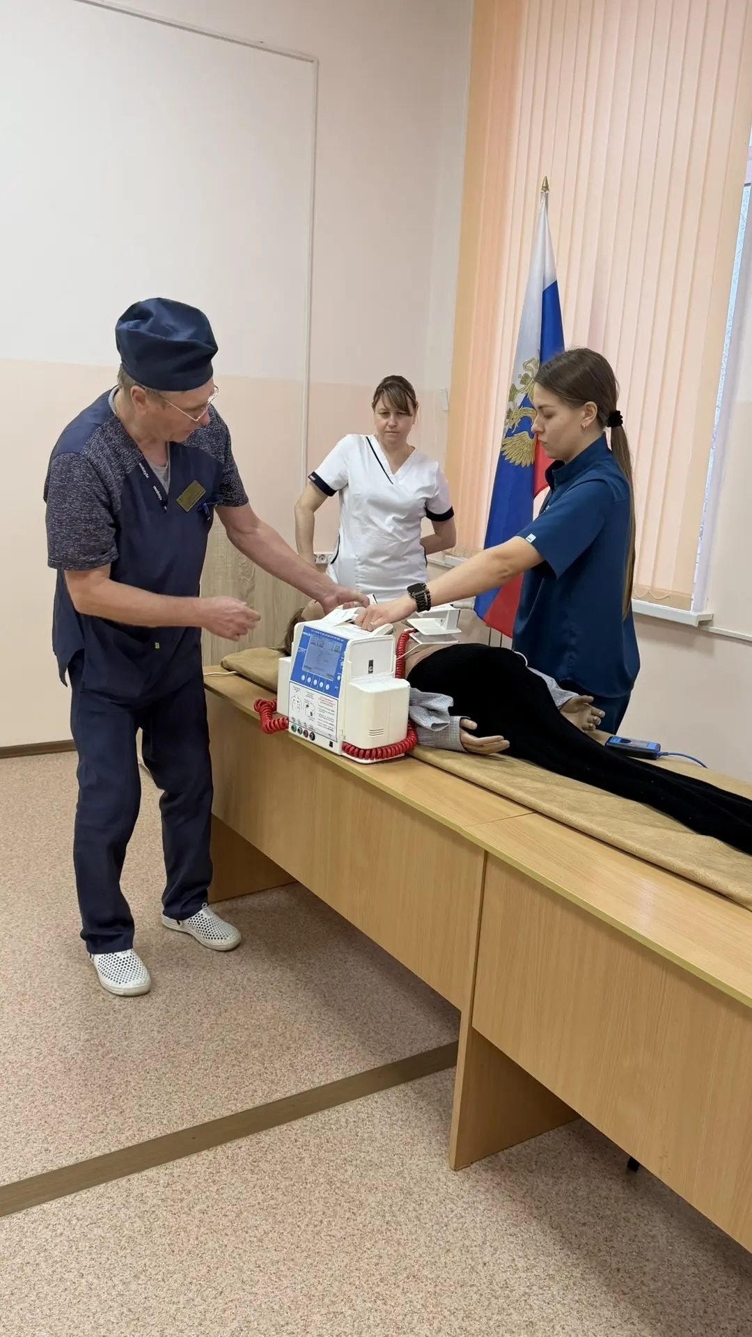 2. Использование дефибриллятора: особое внимание было уделено правильному использованию автоматического внешнего дефибриллятора (АВД). Участники получили практические навыки по его подключению и применению в различных клинических сценариях.