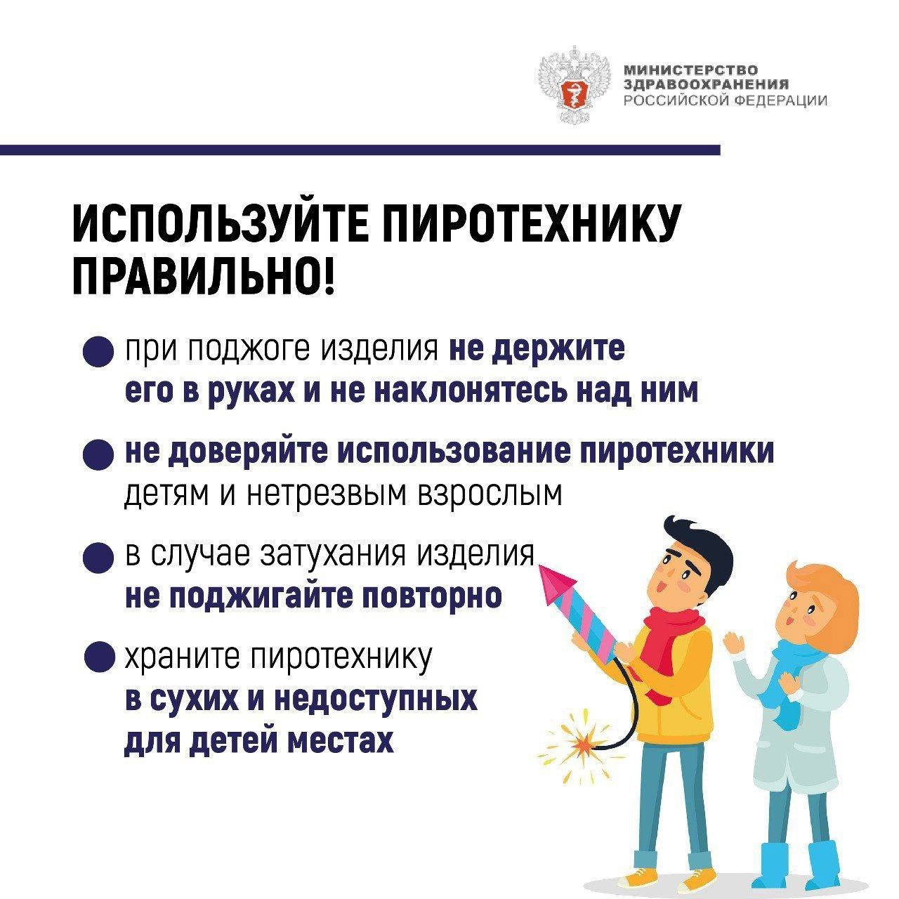 Минздрав РФ напоминает о правилах безопасности в новогодние праздники – смотрите карточки.