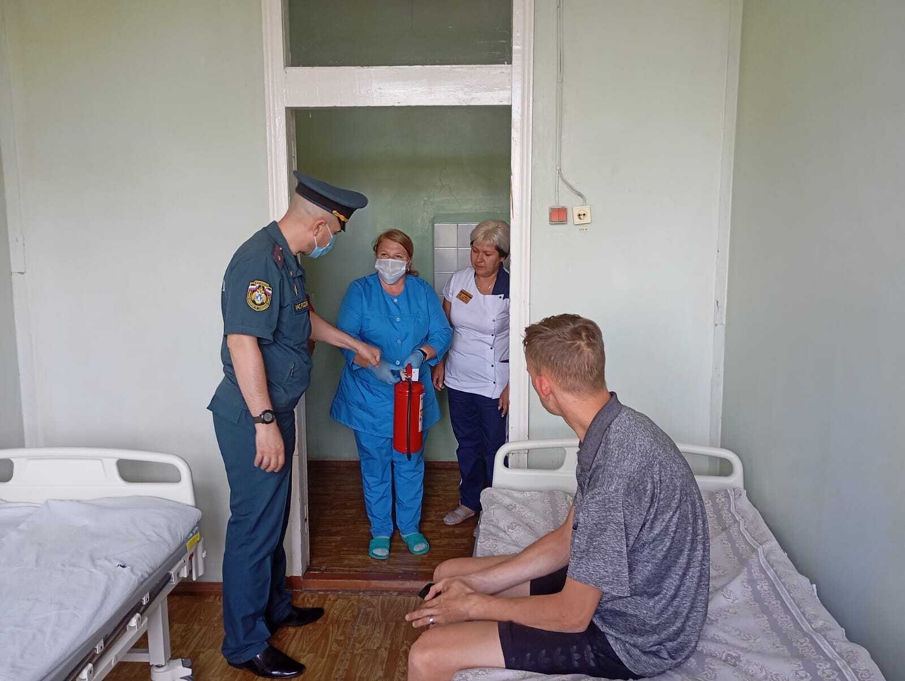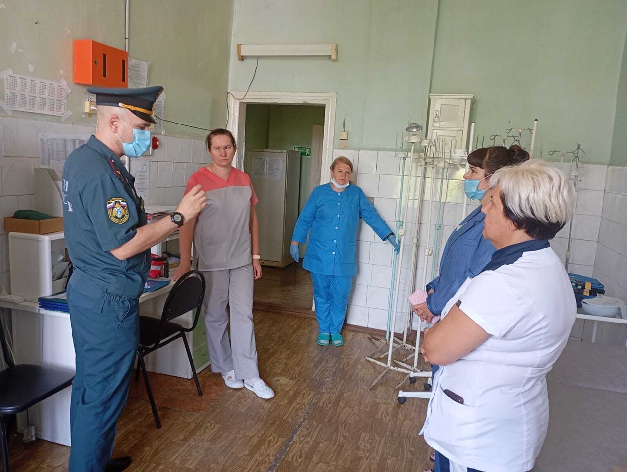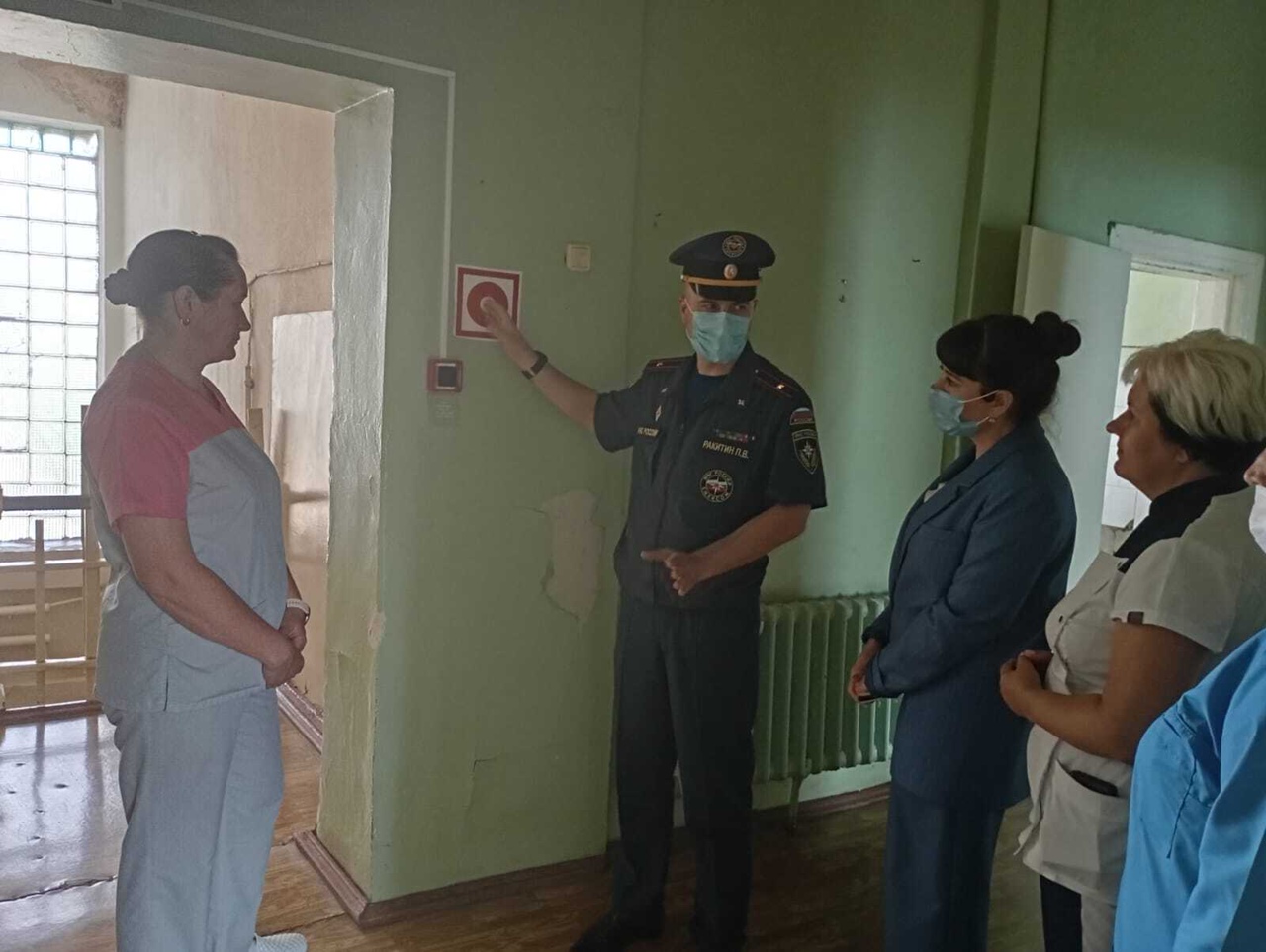 Для оценки правильности действий медиков и их координации на тренировку был приглашён заместитель главного государственного инспектора по пожарному надзору Павел Ракитин. Он ознакомился с планом тренировки, провёл инструктаж для персонала и пациентов перед началом.