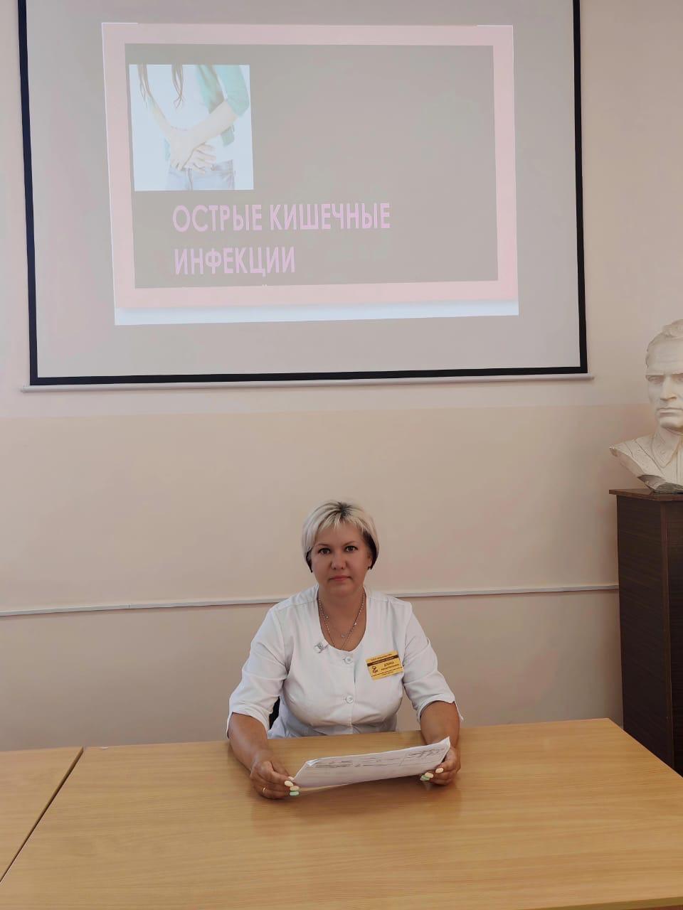 Старшая медицинская сестра терапевтического отделения Добина Н.В. в своем докладе: «Острые кишечные инфекции» подробно остановилась на их классификации, диагностике и профилактике.